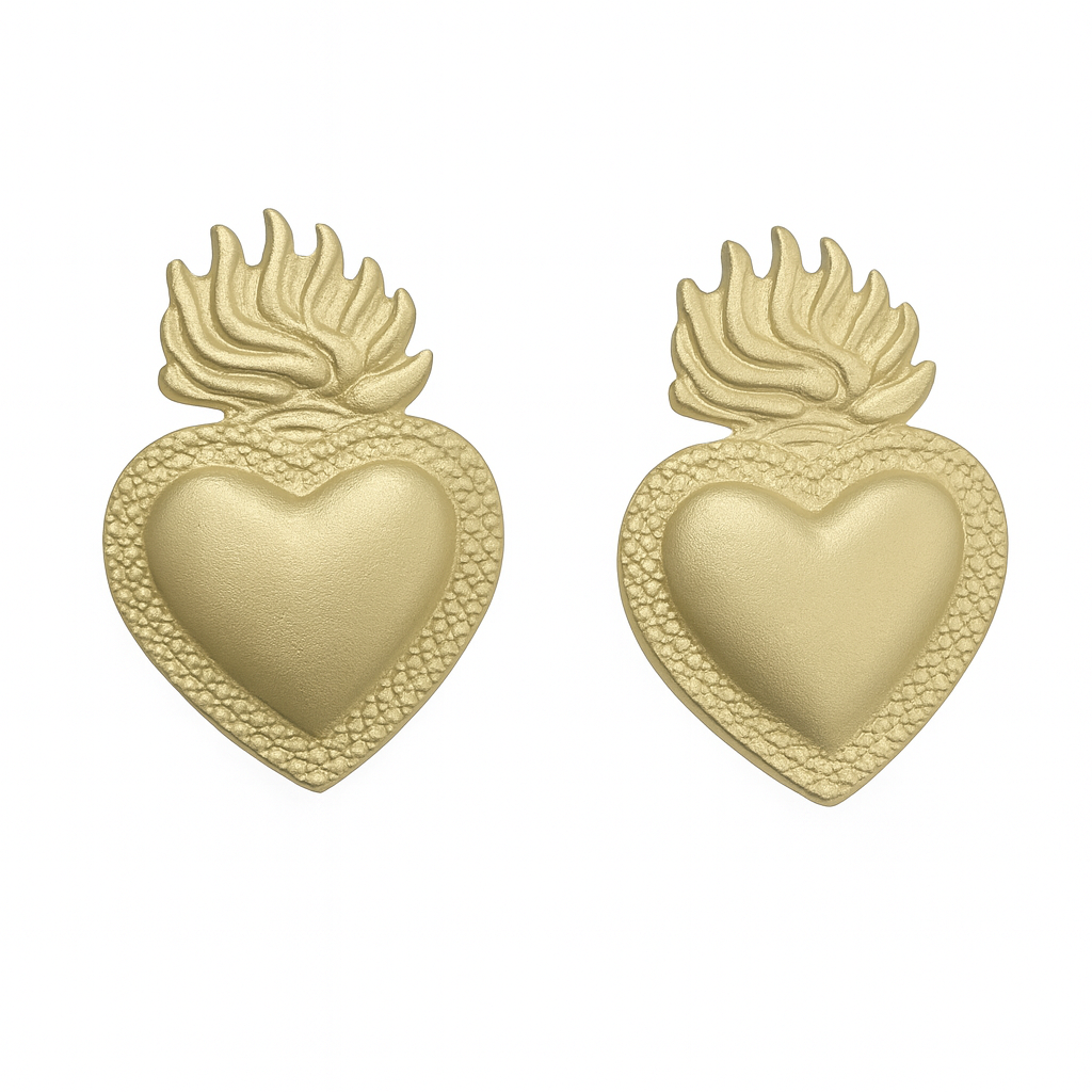 Handmade in Brazil. These "Sacred Heart" inspired studs will be an inspirational touch to your collection.