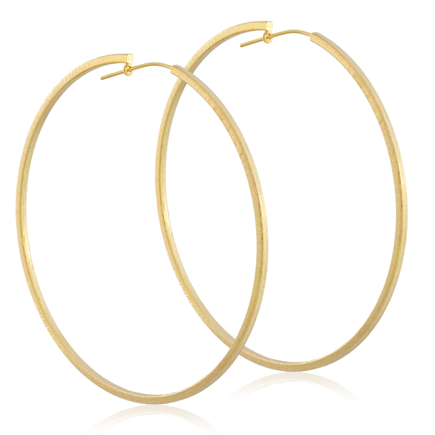 Handmade in Brazil. Large squared edge thin eternity hoops.