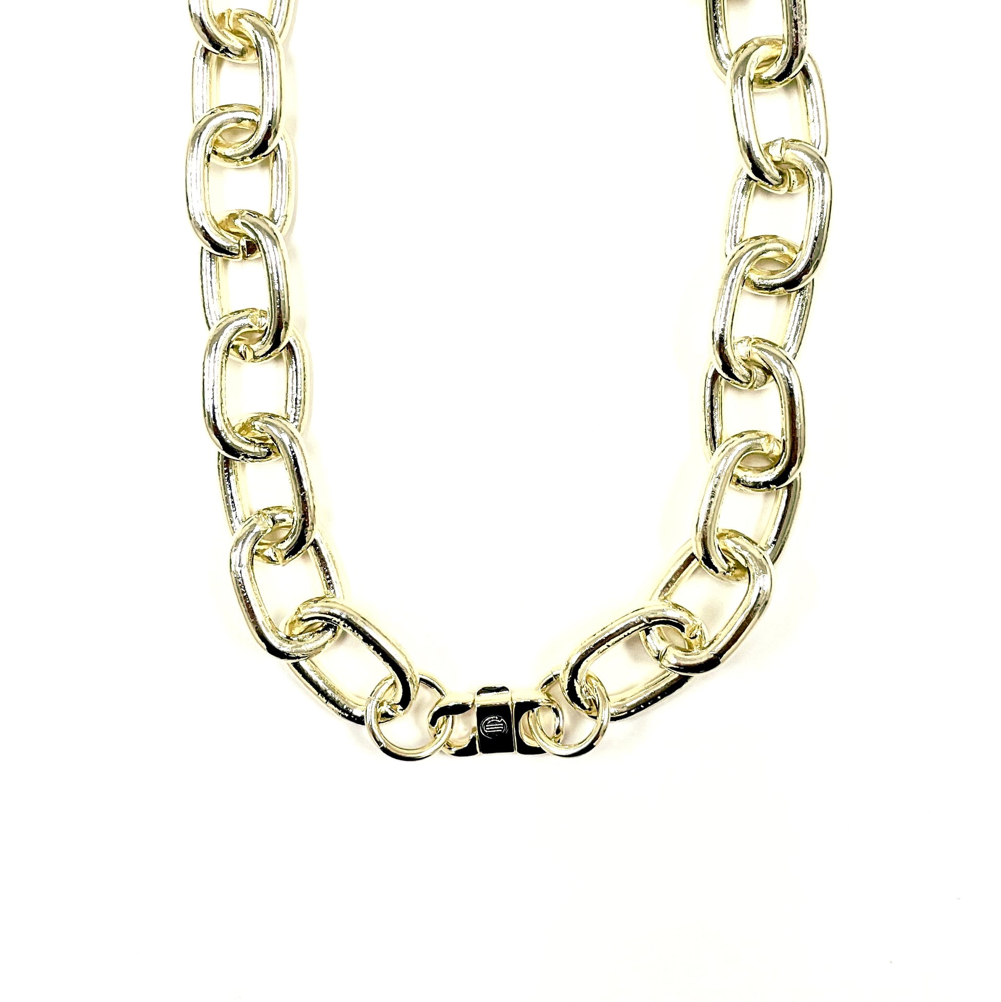 Handmade in Brazil. This chunky oval choker chain will make a statement wherever you go! Embellished with a snap lock clasp, polished to a mirror finish to make you GLOW!
